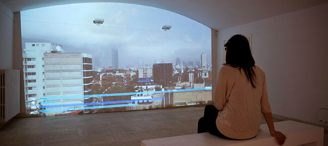 Environmental Disturbances is an installation that works inversely to this process: the user may, from the ideas the landscape triggers, concentration and attention paid to the video, modify some aspects in the weather, lights, color and events occurring in the city. This way an environmental-narrative cycle happens through the user's state of mind, who can focus on changing the landscape in order to fit his/her mood.