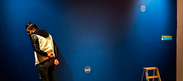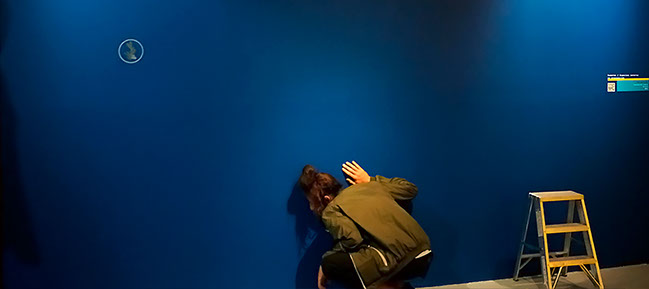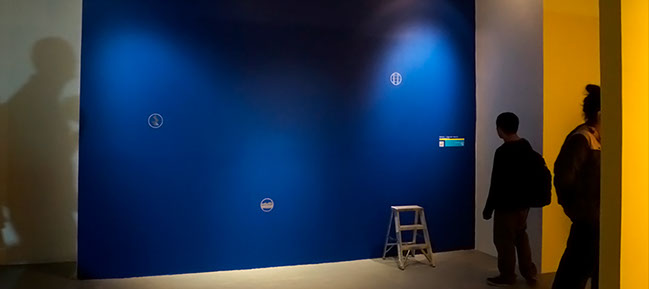 Audience is not aware where these sounds come from, but some stickers are left in the museum walls as a clue of the microphones' position. Stickers (and speakers) are located in places that force the audience to have a playful attitude and adopt uncomfortable postures to be able to hear, while they unknowingly become some kind of spies and complete the experience with their imagination.